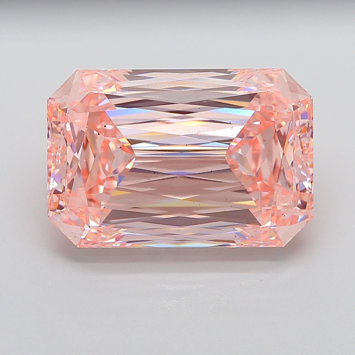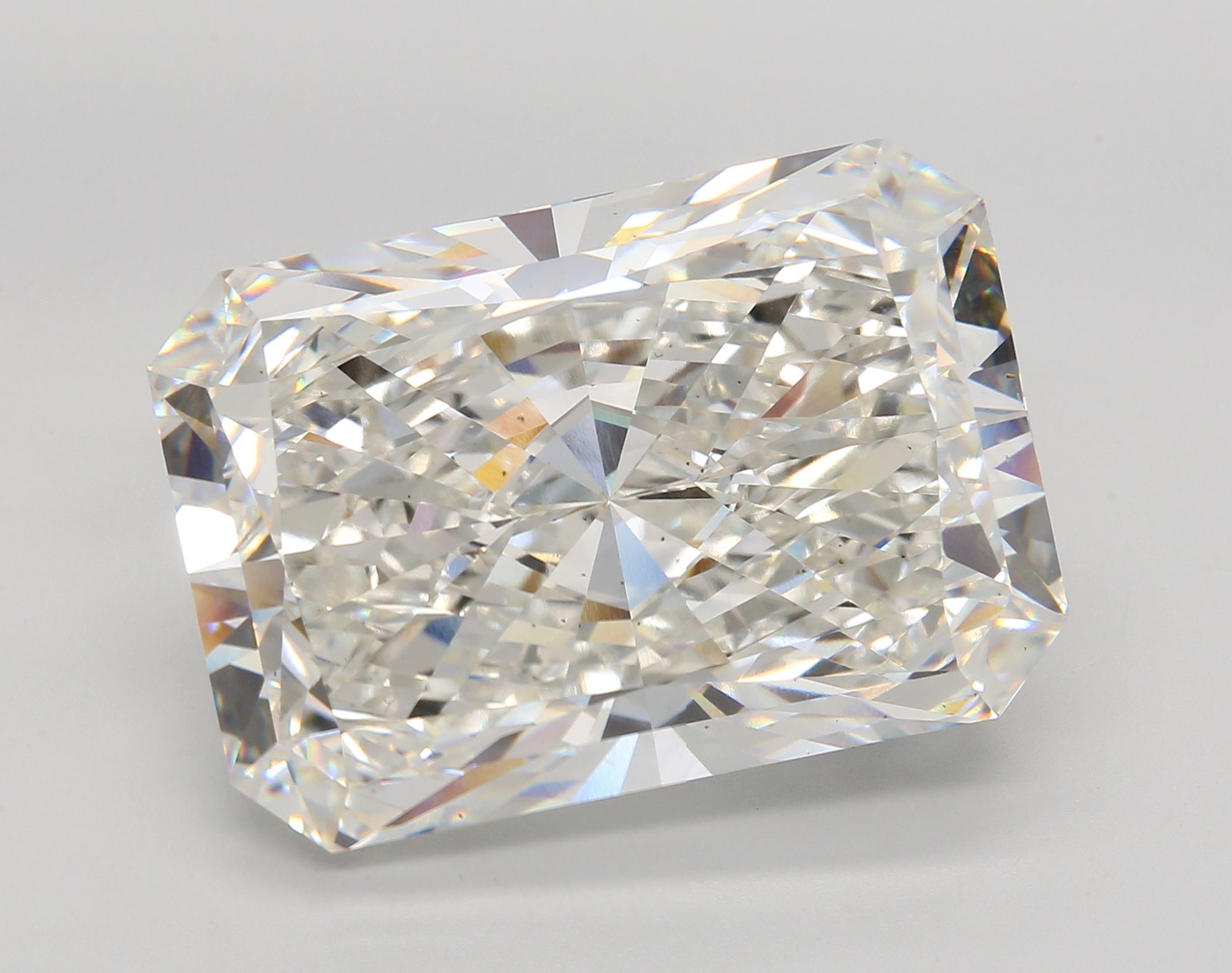 Our Clara Engagement Ring has a radiant cut with an under halo and diamonds on the band.