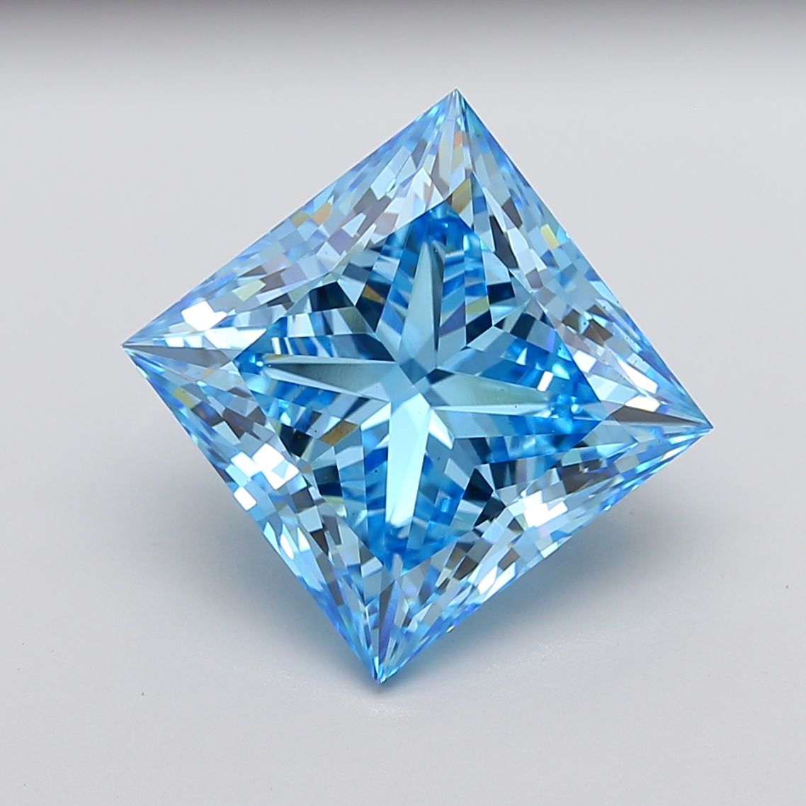 Our Reva Engagement Ring has a princess cut diamond with round diamonds on the shoulders and band.