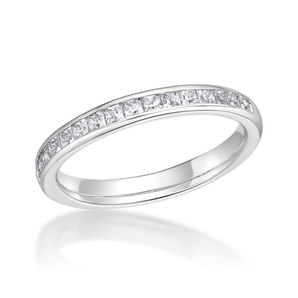 Celebrate your nuptials and your vows with our 3mm Princess Set Diamond Wedding Band. Our designers made sure each ring is designed with a modern mindset but stays true to our traditions. There are different diamond cuts available like Princess Cut, Emerald Cut, Cushion Cut, heart-shaped, and many more. Our 3mm Princess Set Diamond Wedding Band symbolizes the union of two souls who value and respect each other to the utmost level. You can be assured of getting high-quality workmanship at the best price.