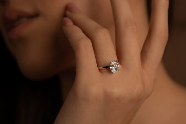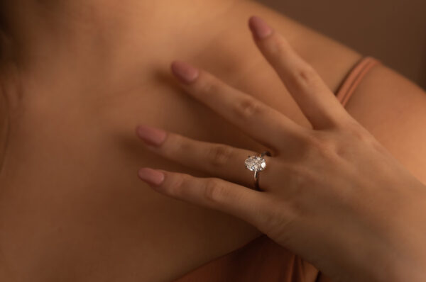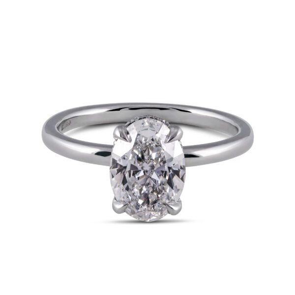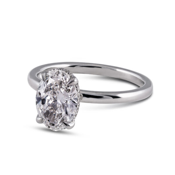 Our Braianna Engagement Ring has an oval cut diamond with a discreet underhalo.