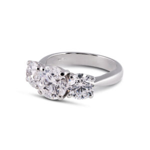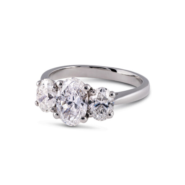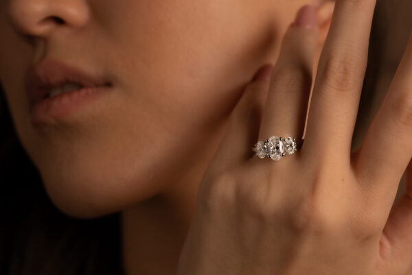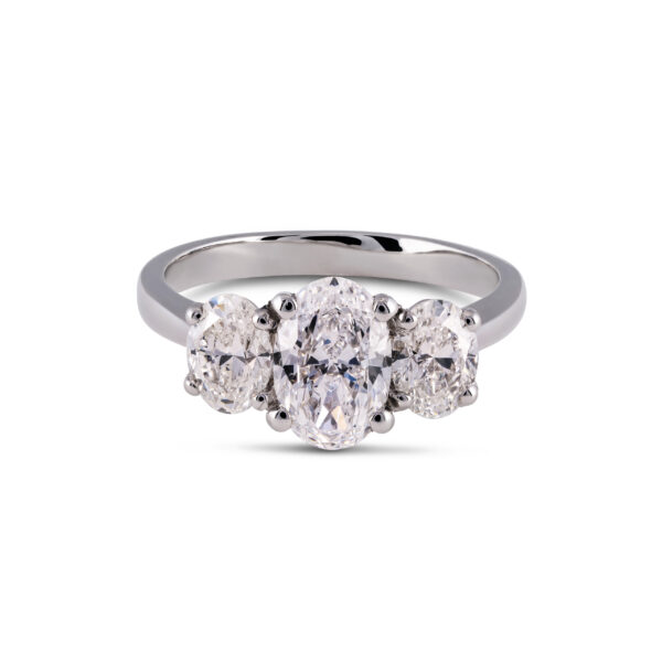Our Fiona Engagement Ring is made with an oval cut diamond with a matching pair of oval cuts on the band.