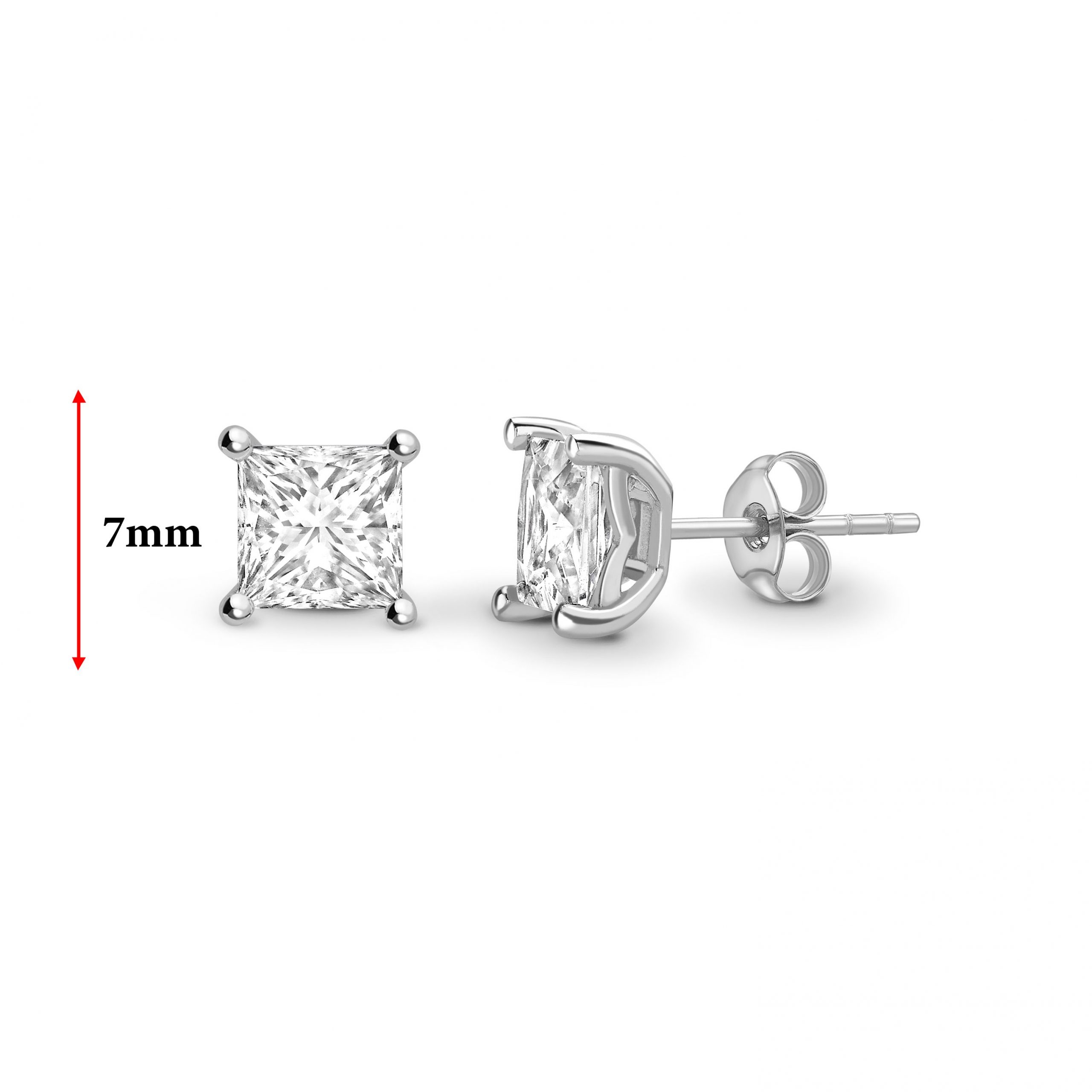 Four Claw Princess Cut Solitaire Stud Earrings