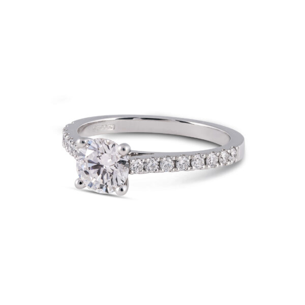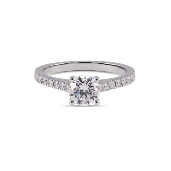 Our classic Galo Engagement Ring with a round brilliant cut diamond and side diamond set.