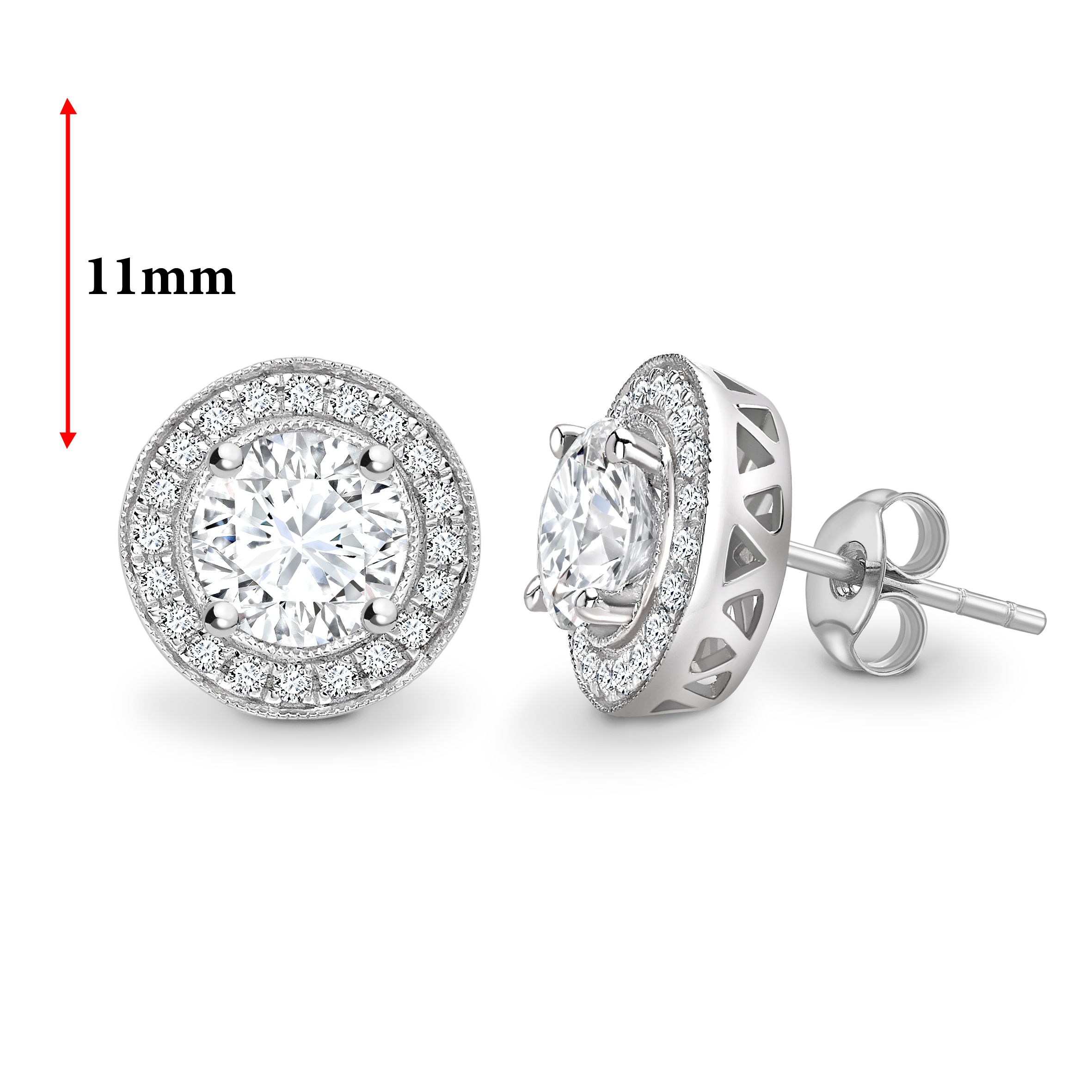 Glamorous Milgrain Edge Solitaire Halo Earstuds