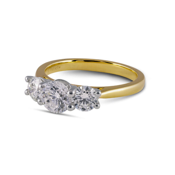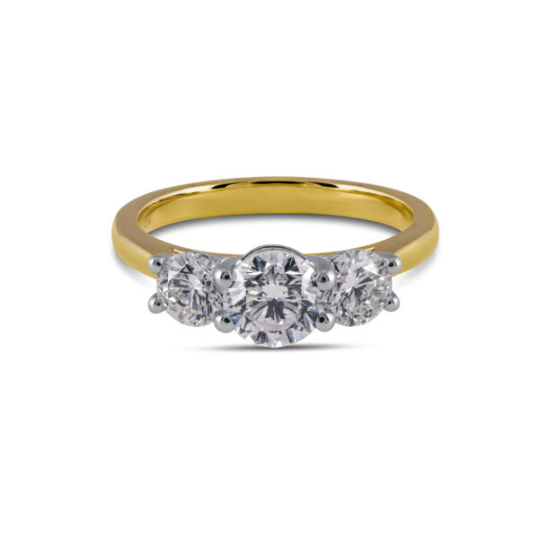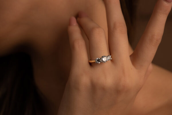 Our Kila Engagement Ring is made with a round brilliant cut in the middle and 2 small diamonds on the side.